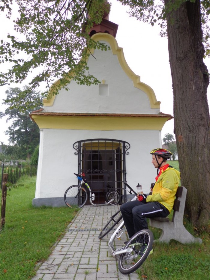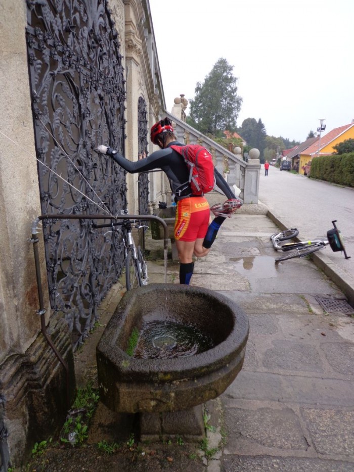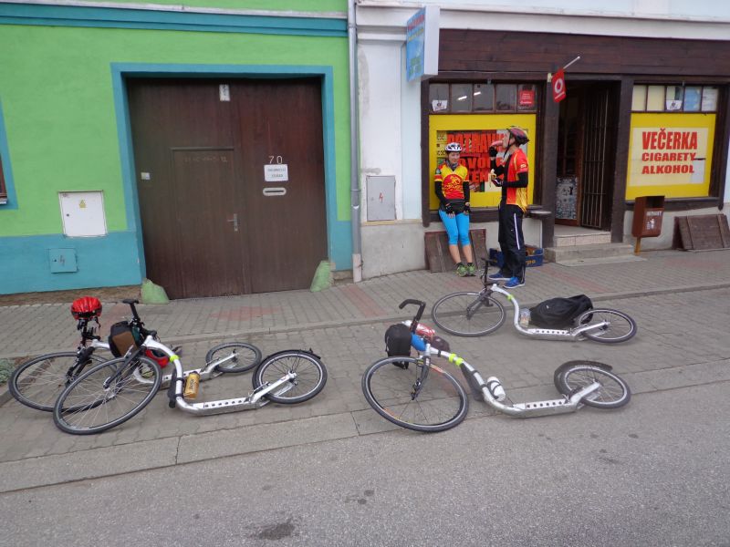 Budíček v 8.00 bolí! Po vydatné snídani osedlávají všichni své koloběžky, mimochodem vše Kickbike RaceMAX, a jasným cílem je zahřívací etapa přes Slavonice. Hned na 10.km dochází k chybce v navigaci a následuje menší zajížďka cca 15km. Borci ( sl. Pavlína se dá podle svých výkonů mezi borce počítat též ) protínají česko-rakouské hranice u Nové Vsi a v cyklistickém vláčku se blíží k Litschau. Cestovní rychlost je zpočátku zbytečně vysoká – cca 20km/h – jde o vytrvalostní etapu, kdy je potřeba udržovat co nejnižší tepovou frekvenci a především ušetřit co nejvíce sil. Z Litschau do Nové Bystřice následuje po sobě několik kopečků, které ztrestají pana Lišku, který je nadšen z pohybu na stupátku mezi dvěma koly na stupátku a nebojí se tempo lehce tahat trochu více, než je třeba. K tomu napomáhá i jeho styl s vysokým nášlapem – jde o styl spíše závodnický. Křeče v obou zadních stehnech mluví za vše. V Bystřici následuje vydatný oběd, kdy všichni naberou síly. Oběd byl natolik vydatný, že několik následujících kilometrů se jede poměrně ztěžka. Avšak krásy České Kanady a nádherné počasí vše přebije. Slavonice, 85.km – svačinka na náměstí a cesta zpět – tentokrát přes Rakousy opět na Litschau, výdup na Schlag a krásných 15 zbývajících km po rovinaté třeboňské pánvi. Výsledek 143,2km.